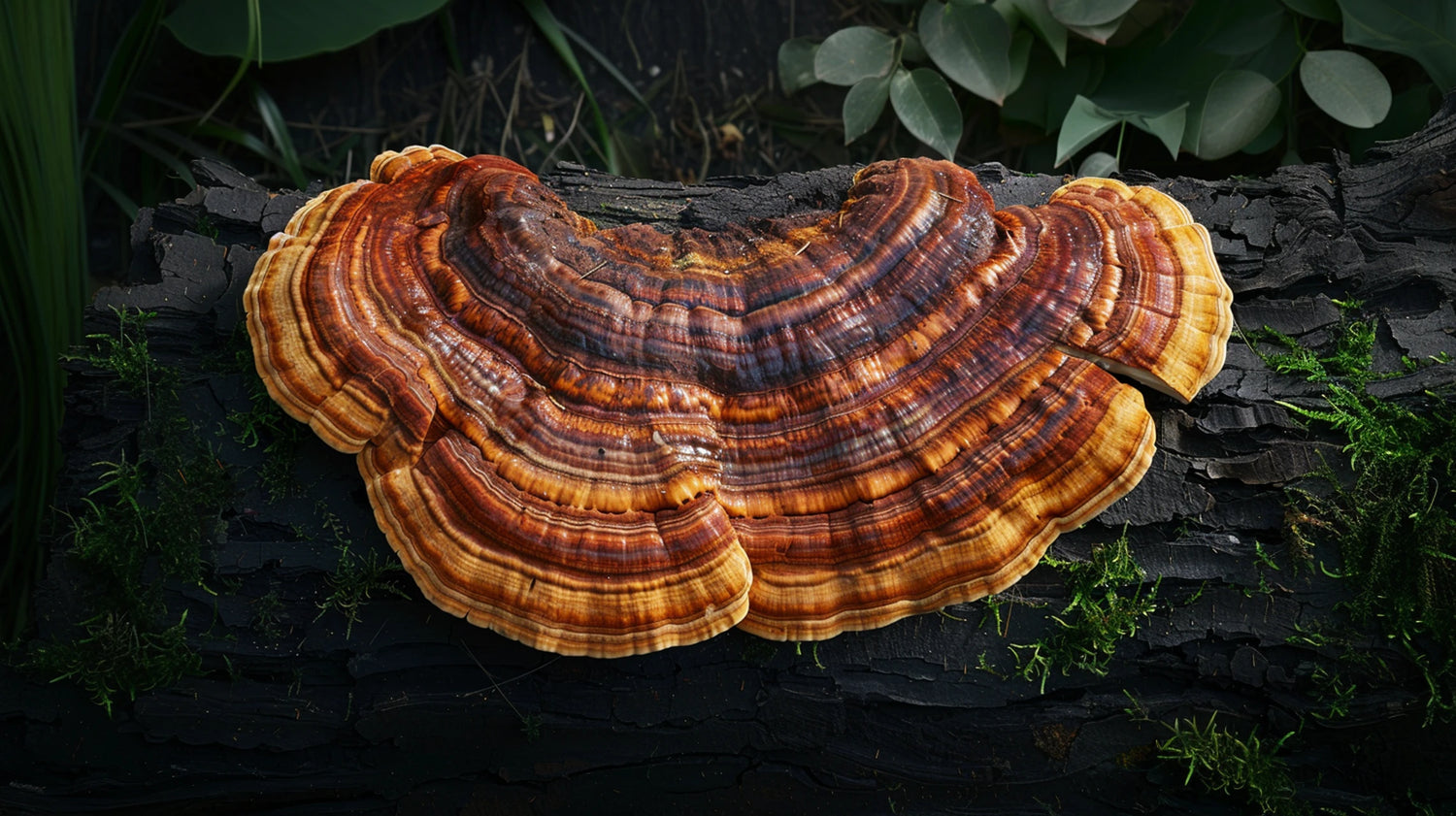 The Reishi mushroom, also known as Lingzhi or Ganoderma lucidum, is often called "The Mushroom of Immortality." This distinctive mushroom has a shiny, reddish-brown cap with a woody texture and grows on hardwood trees. Reishi has been used for thousands of years in Asian cultures and is seen as a symbol of health, longevity, success, and divine power.